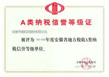 根據《安徽省地稅系統納稅信譽等級管理試行辦法》(皖地稅[200]66號)等有關規定,稅務部門按照納稅人申請、主管地稅機關對納稅人2001年、2002年及2003年稅務登記、納稅申報、稅款繳納、財務管理、納稅資料報送、發票管理等方面的嚴格審核,安徽中德機床股份有限公司被評為:2001—2002年度安徽省地方稅收A類納稅信譽等級單位