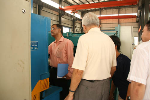 在公司領(lǐng)導(dǎo)的陪同下,PRAKASH先生參觀了公司的成品車間和生產(chǎn)車間,對我公司的生產(chǎn)及研發(fā)能力表示出極大的贊賞。我公司智能化的辦公和流水線系統(tǒng)吸引了PRAKASH先生一行。在操作人員的協(xié)作下,有著二十多年從業(yè)經(jīng)驗(yàn)的PRAKASH先生對我公司的QC11Y大型機(jī)床進(jìn)行了細(xì)致入微的考察,而我公司的機(jī)床也以其過硬的品質(zhì)和精密的設(shè)計贏得了PRAKASH先生的好評。