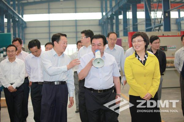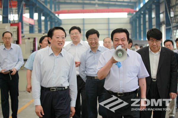 唐承沛副省長在公司董事長鄭長玉陪同下深入到公司裝配車間,當了解到我公司目前銷售形勢很好、處于供不應求的狀態時,唐承沛非常高興,要求企業一定要注重品牌建設,生意好、訂單多的時候,更要保正產品穩定可靠的品質,良好的產品質量才能使企業在強大的競爭中立于不敗之地,使公司得以持續發展,從而贏得更大的市場空間;聞悉,我公司數控化的比例現在約占到總量的40%左右,唐承沛表示,機床屬于傳統的裝備制造業,向高科技、數控化發展已經是大勢所趨,只有科技含量高,產品的附加值才能上去,在國際分工中才有一席之地,我國已有不少傳統機床企業通過科技創新,自主研發出高、精、尖的產品來替代原先進口的產品?!笆濉币巹澲校瑖覍⒀b備制造業列為重點建設項目,相信中德可以利用這個契機,生產出更多更好的產品貢獻于社會,唐承沛副省長鼓勵企業努力將中德機床品牌打造成為“中國馳名商標”。